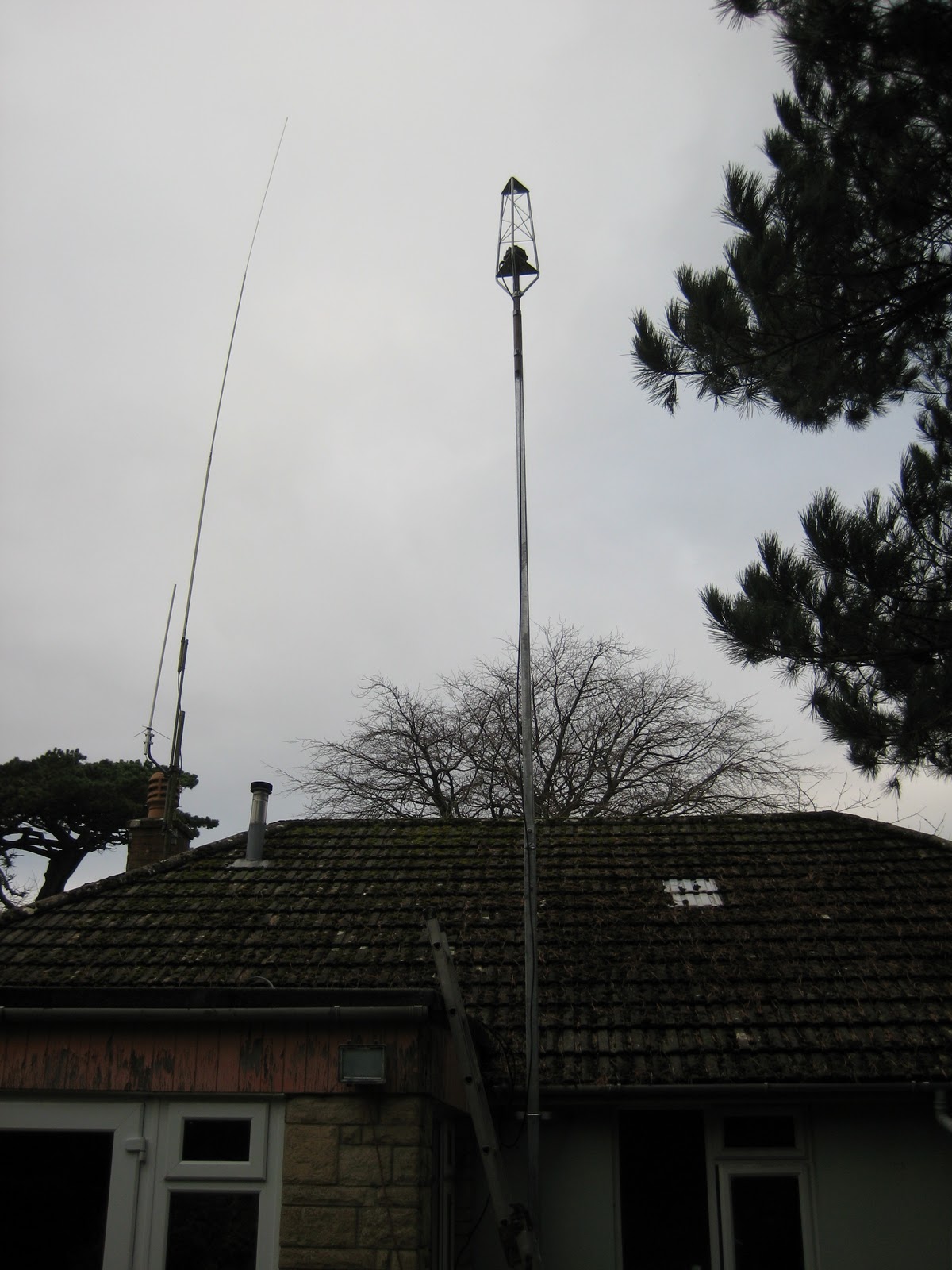 Thanks to John for the help today (and my brother standing on the roof at the moment of fixing) I have at last put the mast up.